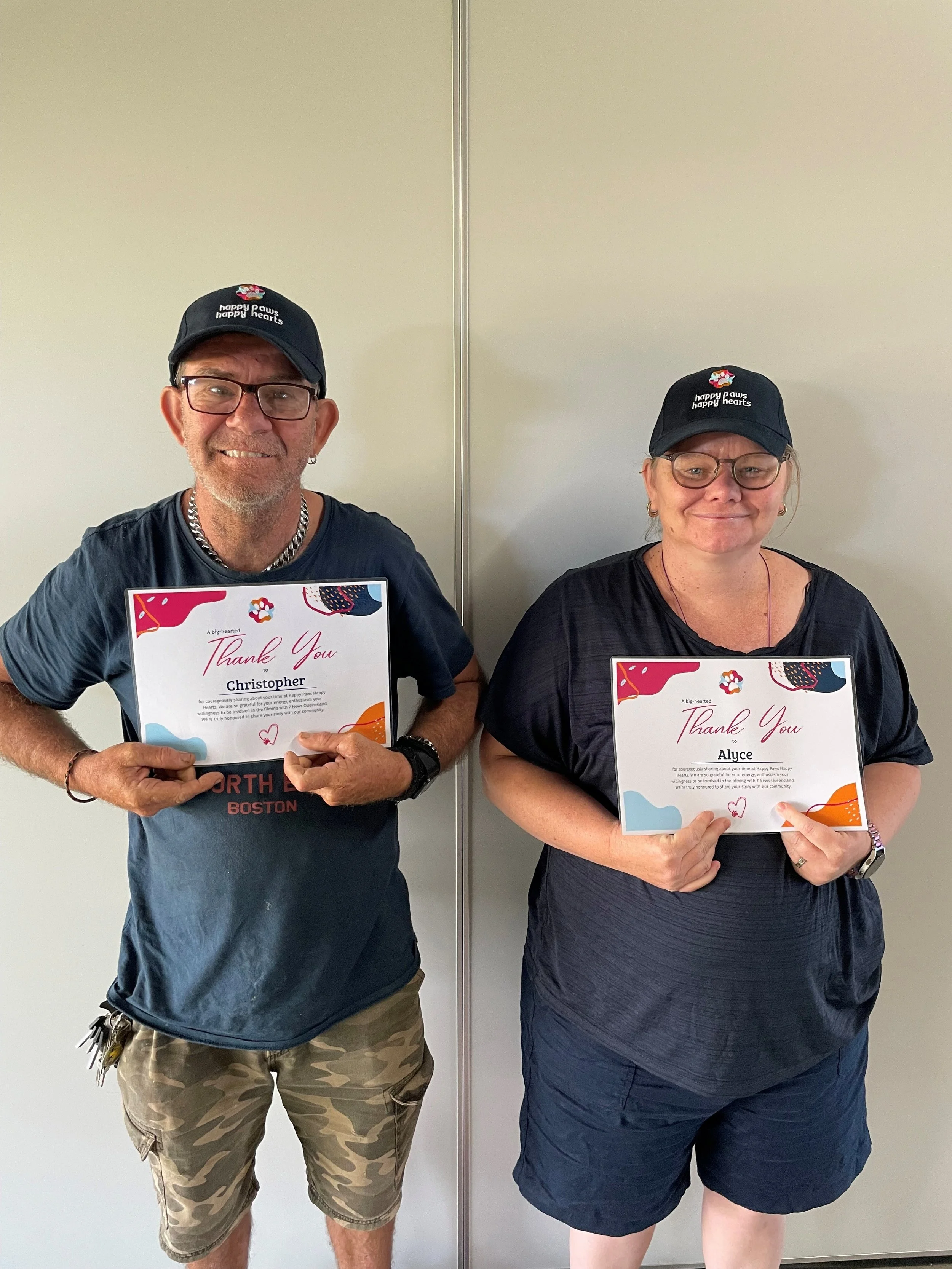 During a recent Tuesday morning Basics session at Wacol, Christopher and Alyce were unexpectedly presented with an exciting filming opportunity for a special 7 News Queensland segment for Happy Paws Happy Hearts. True to their enthusiastic nature, both participants quickly put their hands up to get involved.