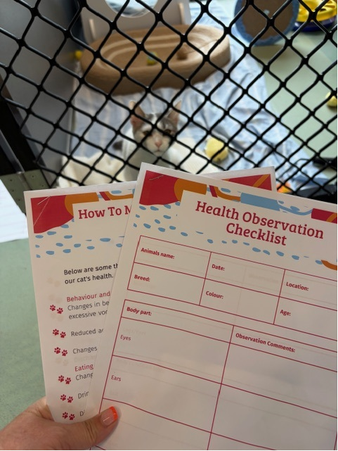 What began as theory in a recent animal health and welfare learning module, quickly translated into real, hands-on practice. With the group already responsible for spot cleaning the cat encloses every Friday morning, the group added an extra and incredibly valuable responsibility to their mornings: conducting a “body scan” health check on every cat and kitten, observing, recording, and reporting any concerns back to the Animal Attendant team.